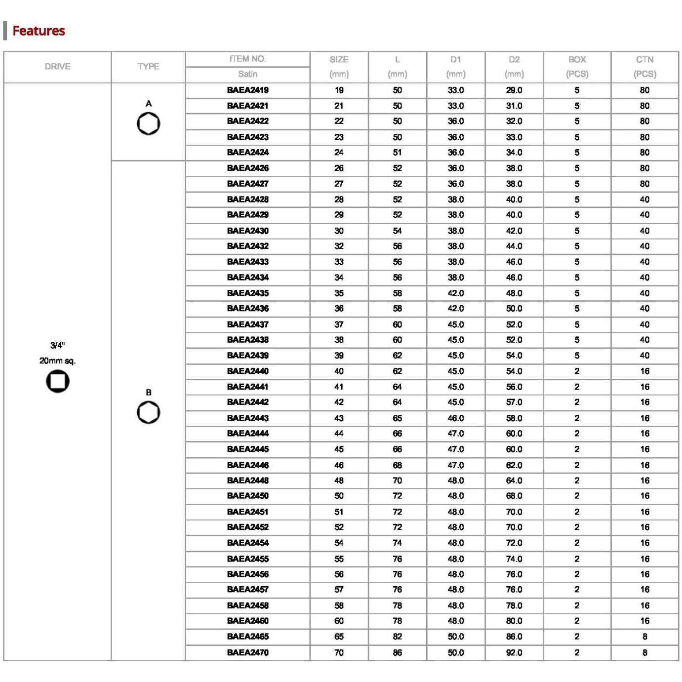 بکس تکی 3/4 ،6پر تاپ تول مدل BAEA2430